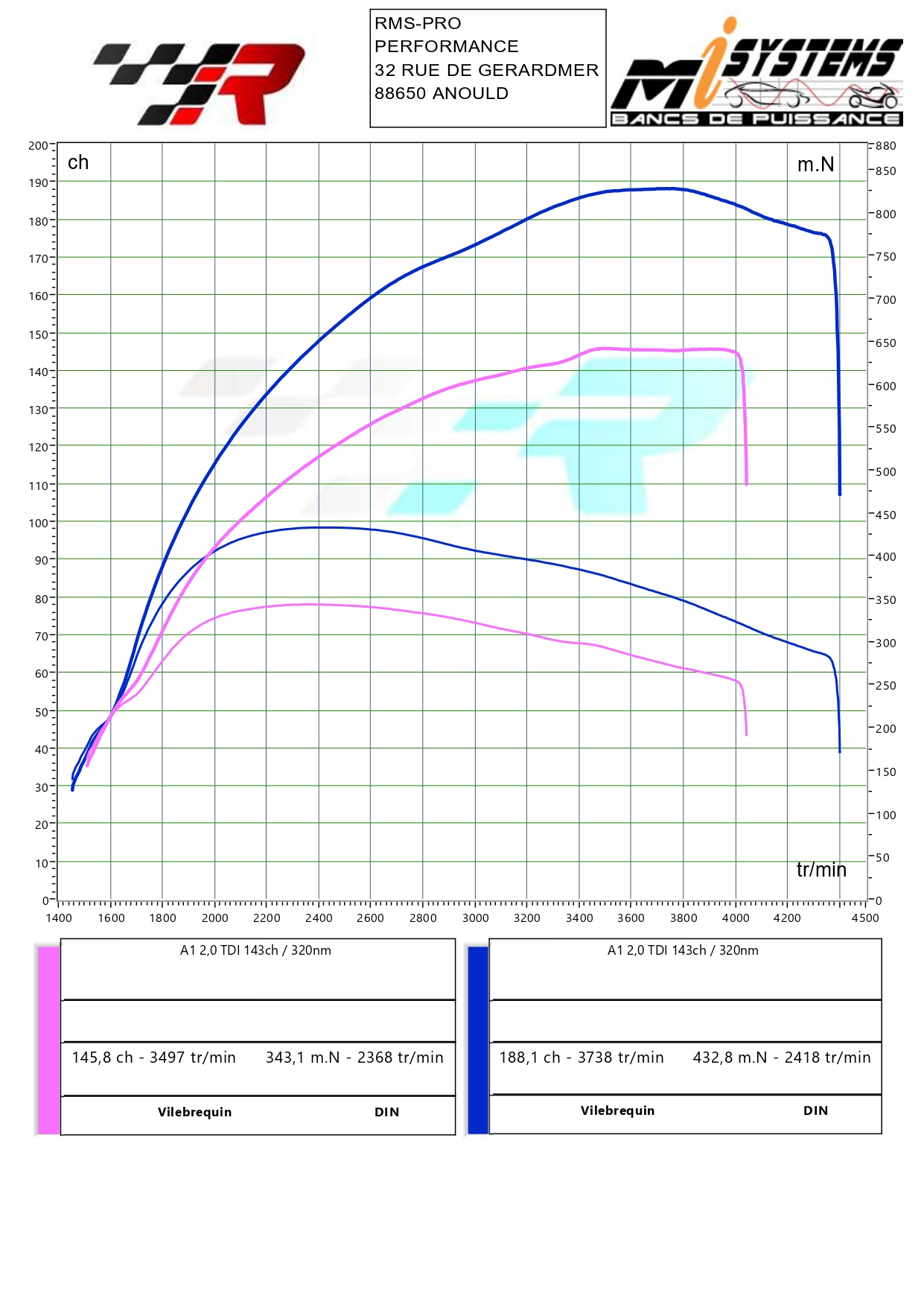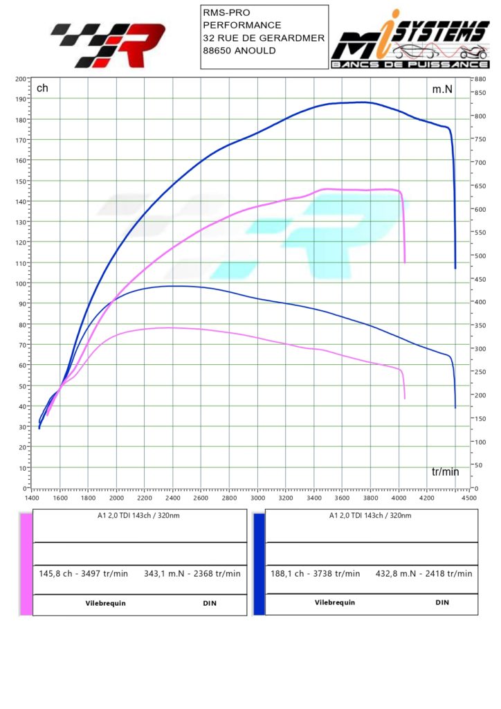 Voici les résultats obtenus après reprogrammation du calculateur moteur. Nous veillons à ne pas dépasser les tolérances fixées par le constructeur, tant au niveau du moteur que de la boîte de vitesse.