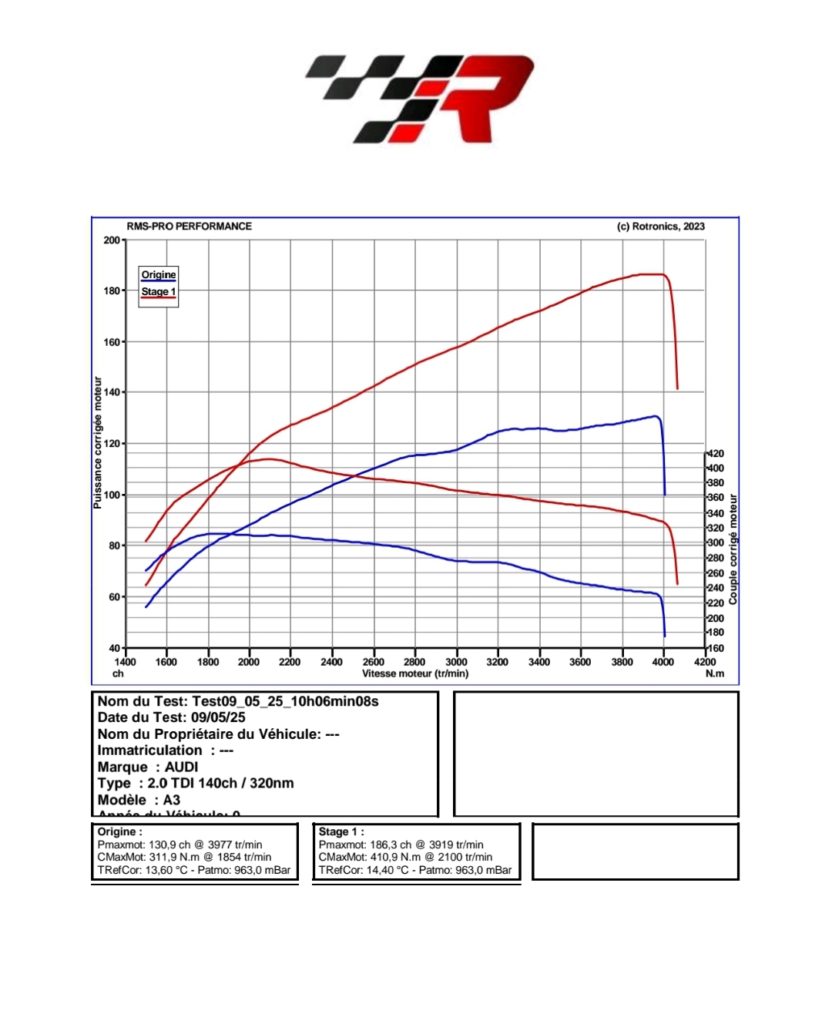 Voici les résultats obtenus après reprogrammation du calculateur moteur. Nous veillons à ne pas dépasser les tolérances fixées par le constructeur, tant au niveau du moteur que de la boîte de vitesse.