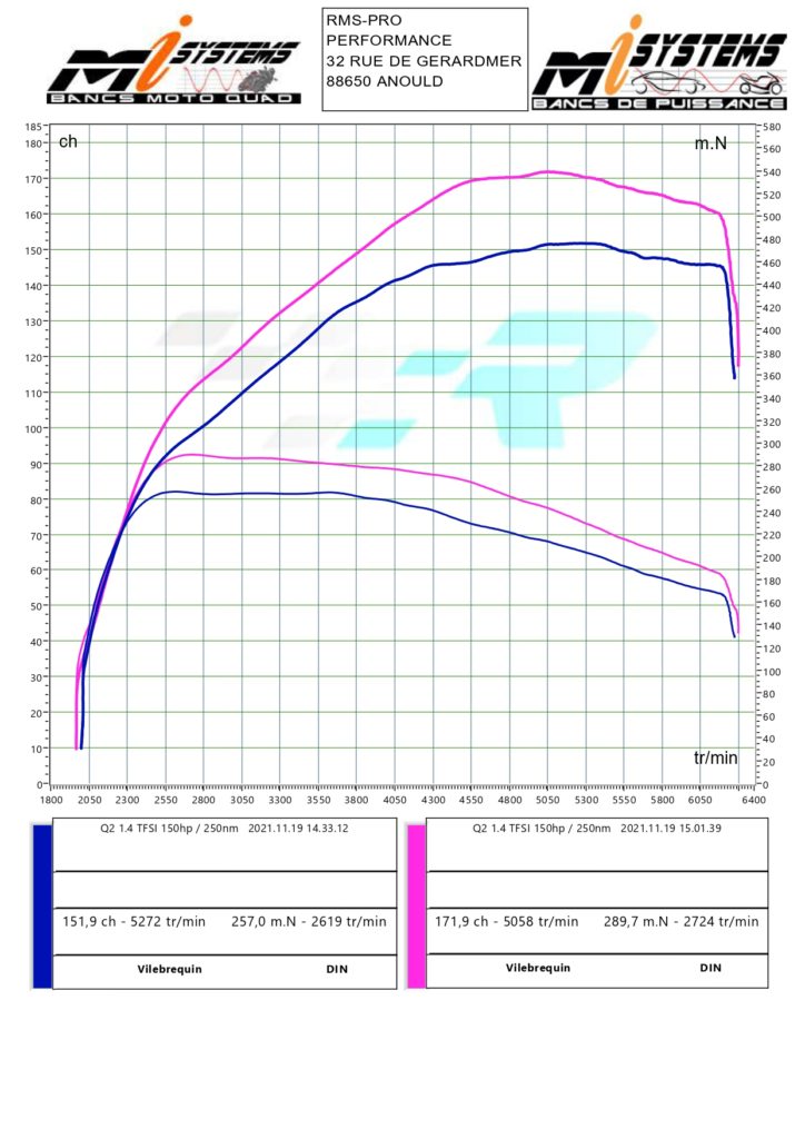 Voici les résultats obtenus après reprogrammation du calculateur moteur. Nous veillons à ne pas dépasser les tolérances fixées par le constructeur, tant au niveau du moteur que de la boîte de vitesse.