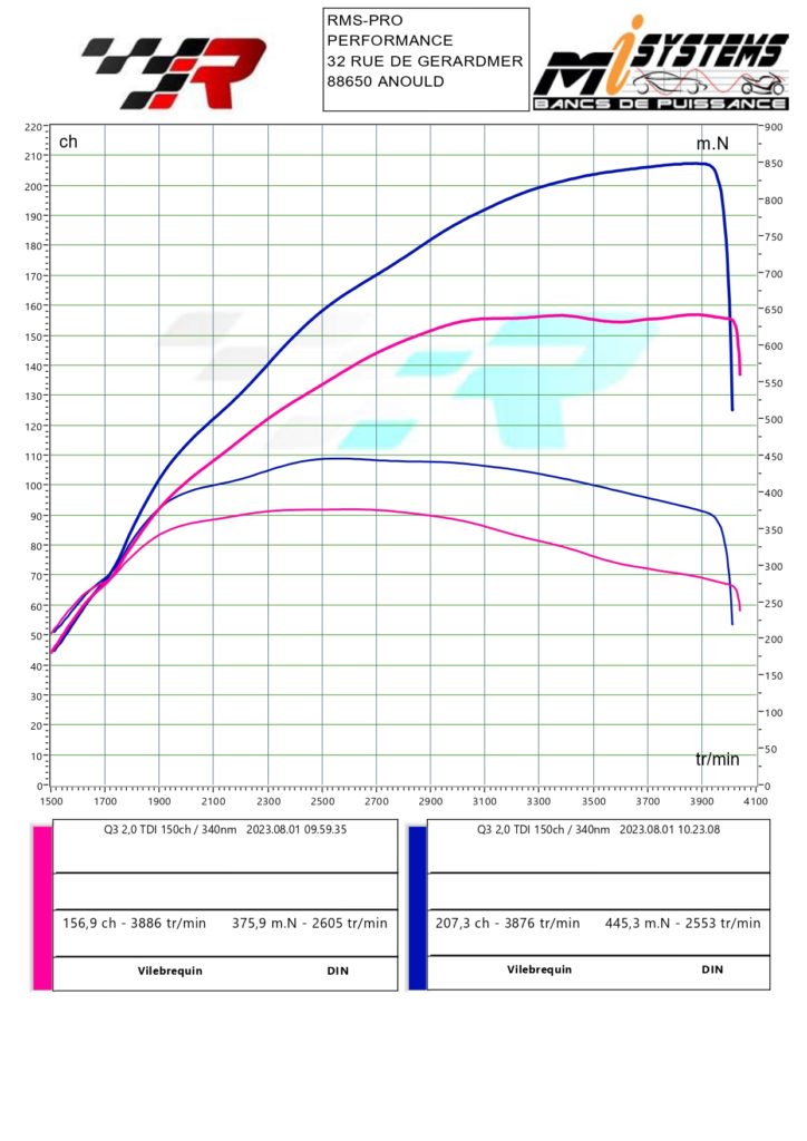 Voici les résultats obtenus après reprogrammation du calculateur moteur. Nous veillons à ne pas dépasser les tolérances fixées par le constructeur, tant au niveau du moteur que de la boîte de vitesse.