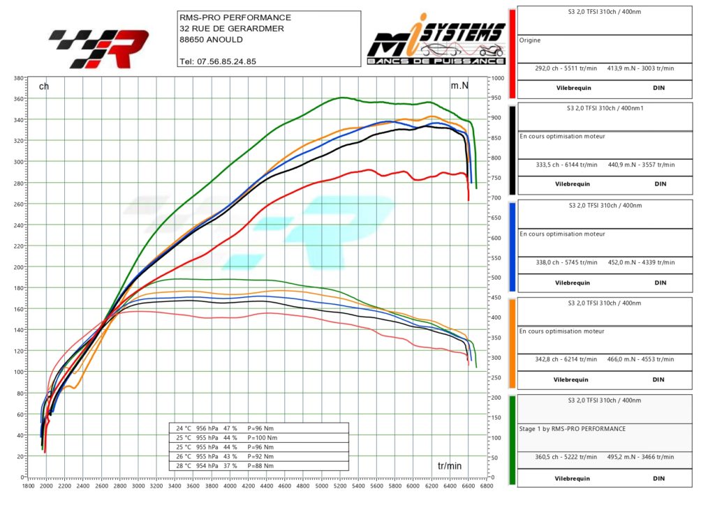 Voici les résultats obtenus après reprogrammation du calculateur moteur. Nous veillons à ne pas dépasser les tolérances fixées par le constructeur, tant au niveau du moteur que de la boîte de vitesse.