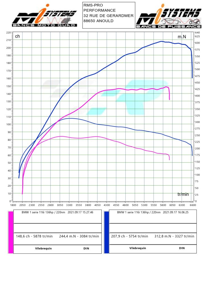 Voici les résultats obtenus après reprogrammation du calculateur moteur. Nous veillons à ne pas dépasser les tolérances fixées par le constructeur, tant au niveau du moteur que de la boîte de vitesse.