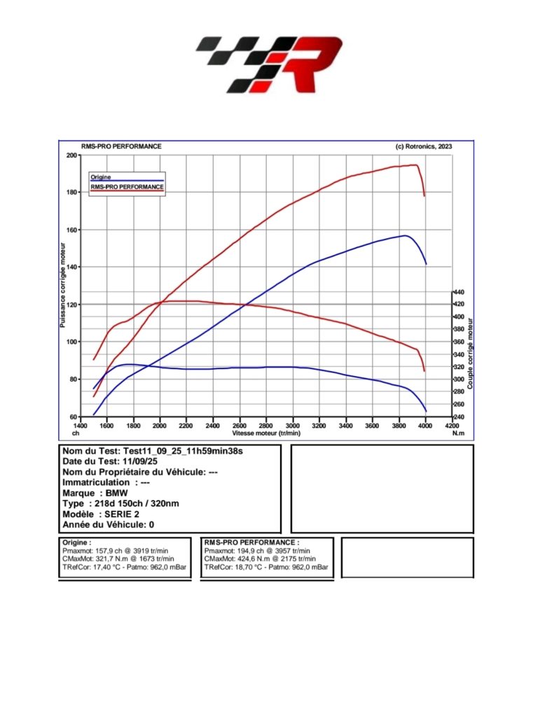 Voici les résultats obtenus après reprogrammation du calculateur moteur. Nous veillons à ne pas dépasser les tolérances fixées par le constructeur, tant au niveau du moteur que de la boîte de vitesse.