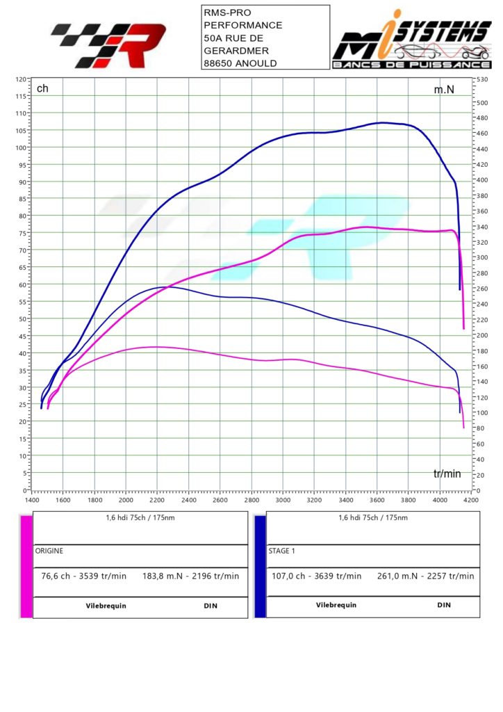Voici les résultats obtenus après reprogrammation du calculateur moteur. Nous veillons à ne pas dépasser les tolérances fixées par le constructeur, tant au niveau du moteur que de la boîte de vitesse.
