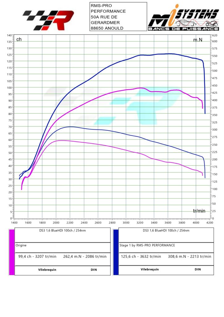 Voici les résultats obtenus après reprogrammation du calculateur moteur. Nous veillons à ne pas dépasser les tolérances fixées par le constructeur, tant au niveau du moteur que de la boîte de vitesse.