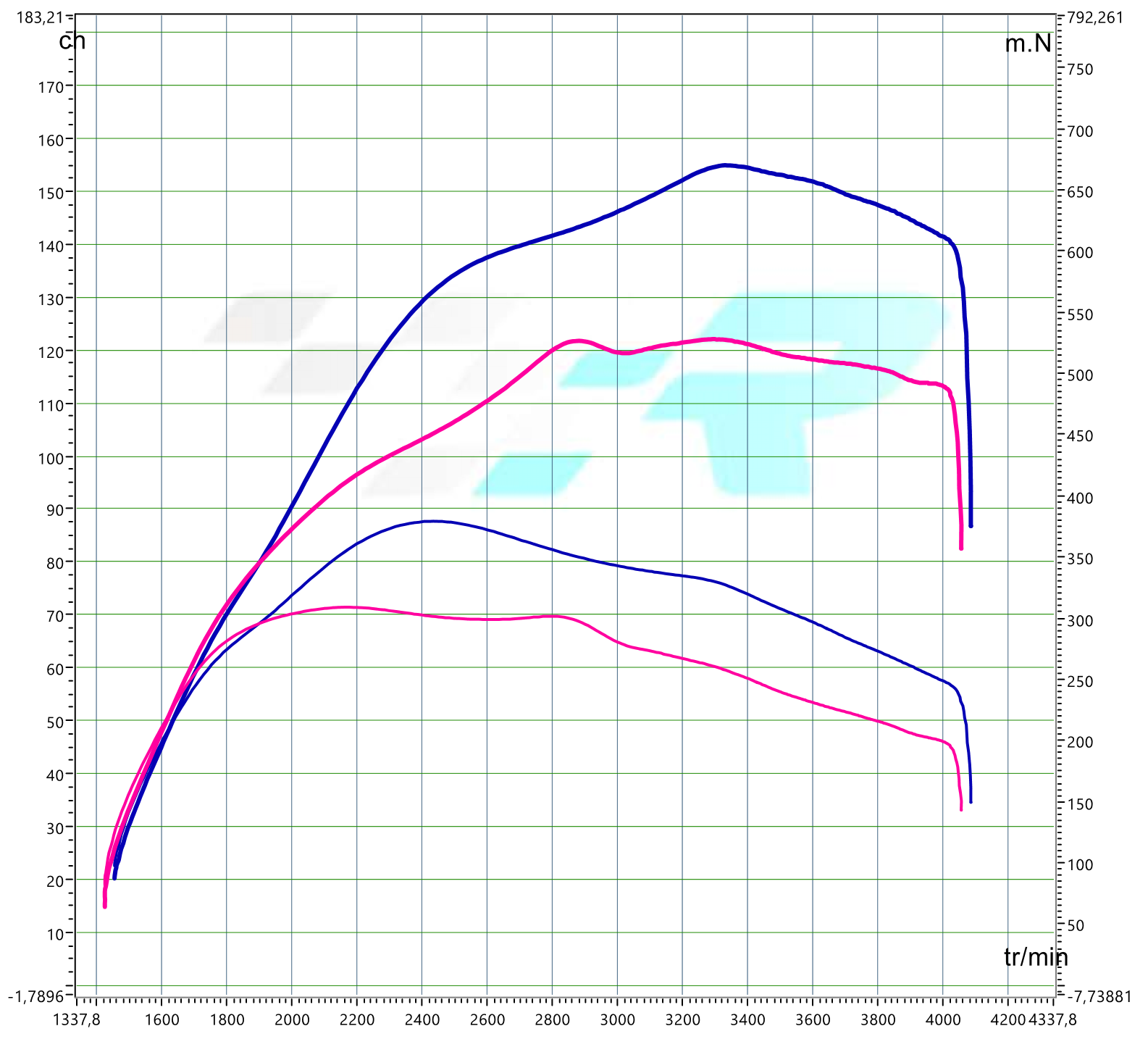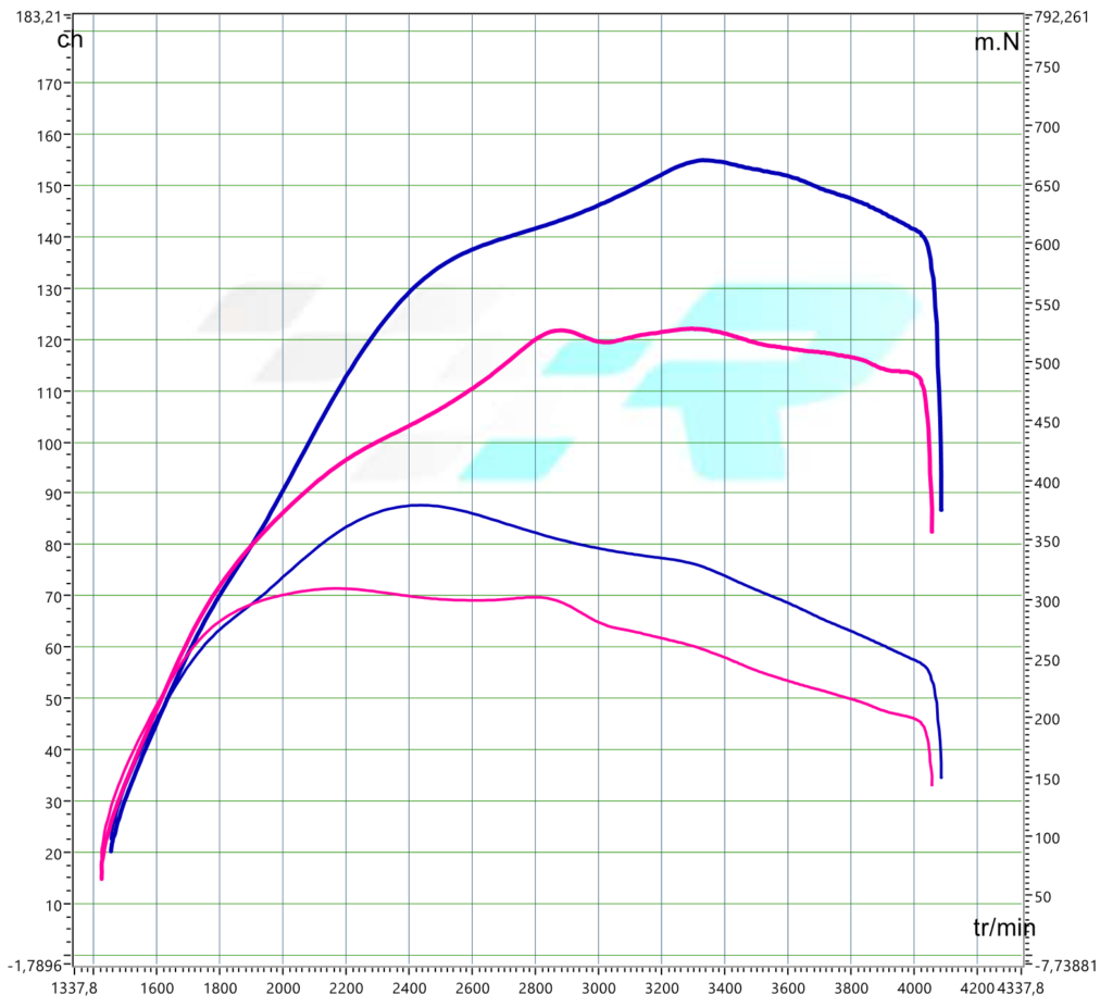 Voici les résultats obtenus après reprogrammation du calculateur moteur. Nous veillons à ne pas dépasser les tolérances fixées par le constructeur, tant au niveau du moteur que de la boîte de vitesse.