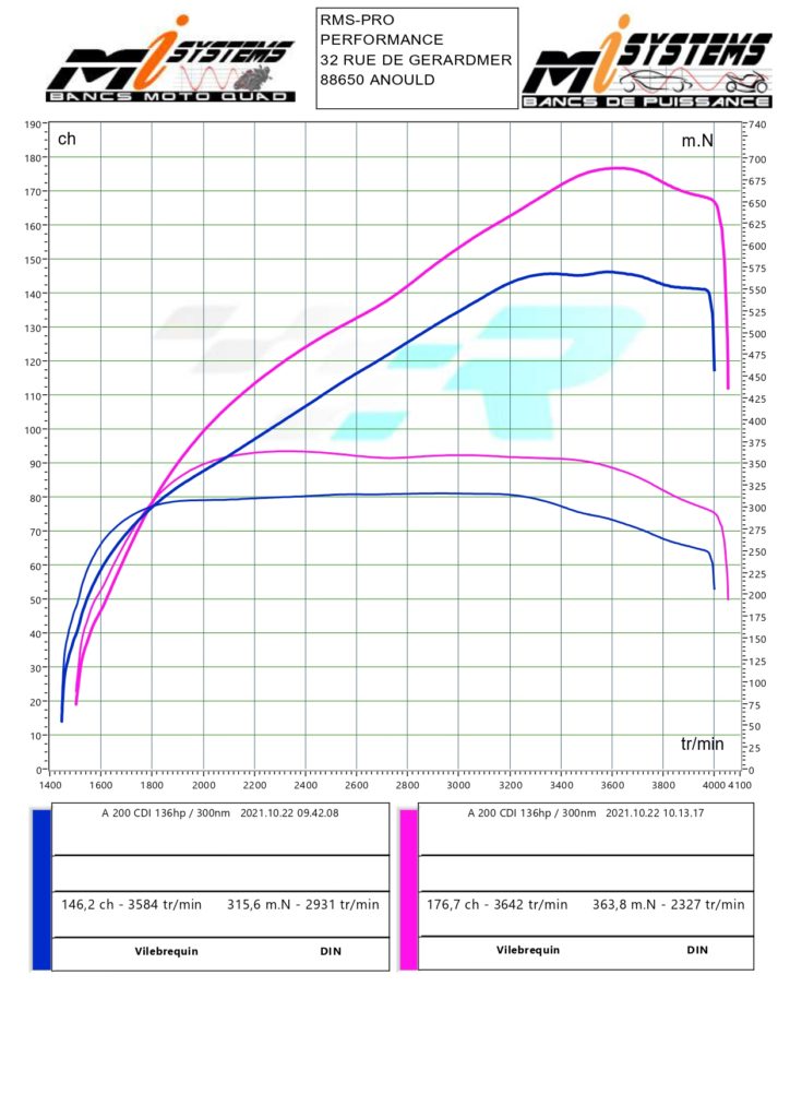 Voici les résultats obtenus après reprogrammation du calculateur moteur. Nous veillons à ne pas dépasser les tolérances fixées par le constructeur, tant au niveau du moteur que de la boîte de vitesse.
