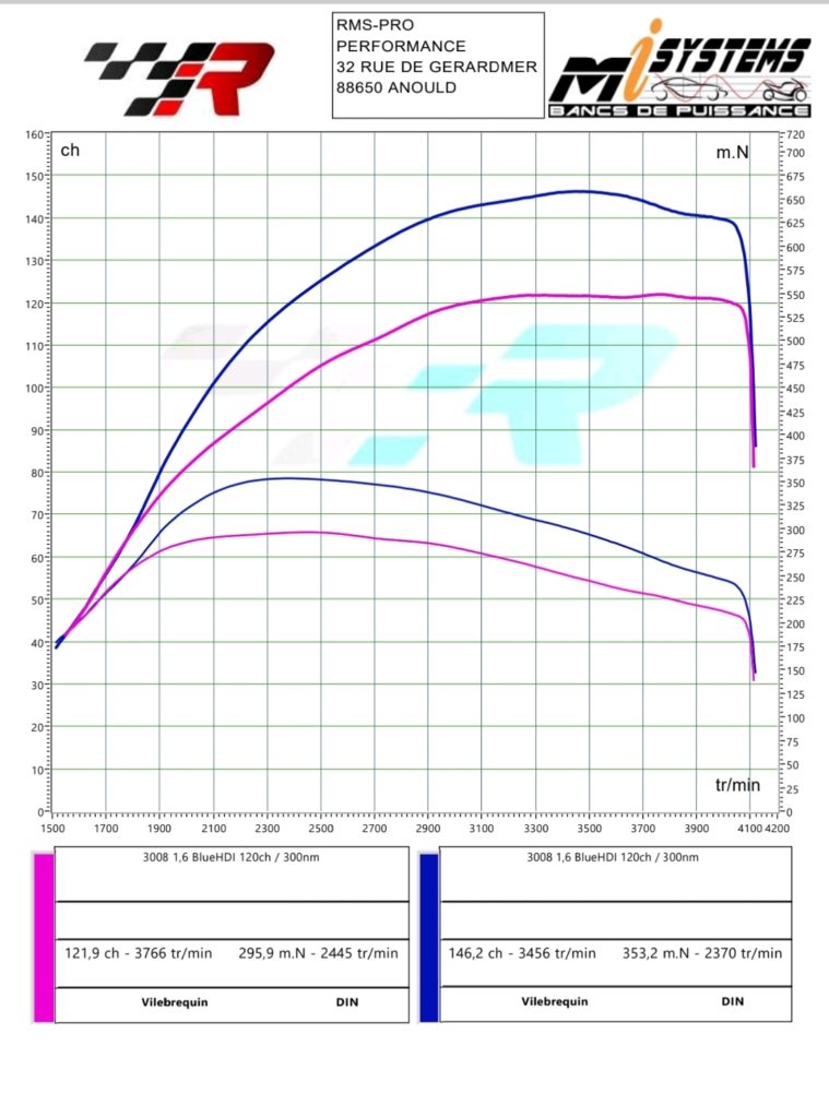 Voici les résultats obtenus après reprogrammation du calculateur moteur. Nous veillons à ne pas dépasser les tolérances fixées par le constructeur, tant au niveau du moteur que de la boîte de vitesse.