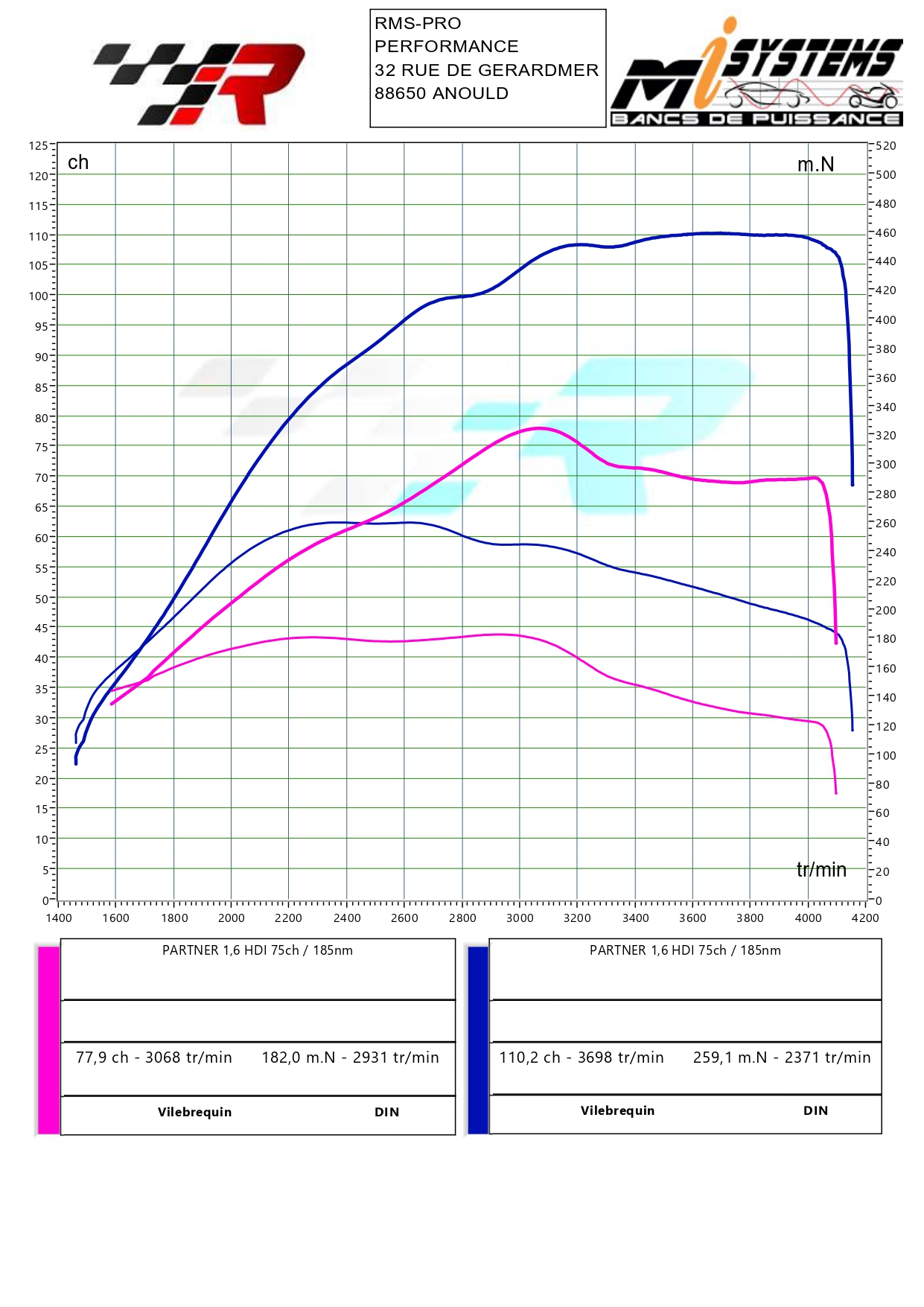 Voici les résultats obtenus après reprogrammation du calculateur moteur. Nous veillons à ne pas dépasser les tolérances fixées par le constructeur, tant au niveau du moteur que de la boîte de vitesse.