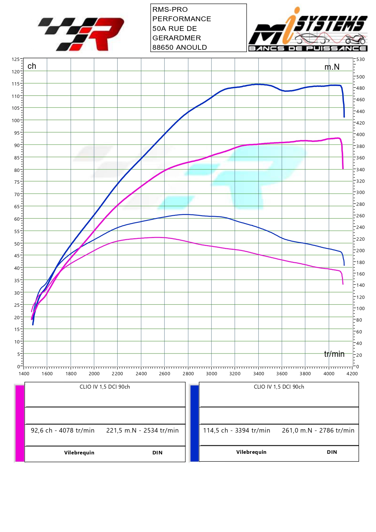 Voici les résultats obtenus après reprogrammation du calculateur moteur. Nous veillons à ne pas dépasser les tolérances fixées par le constructeur, tant au niveau du moteur que de la boîte de vitesse.