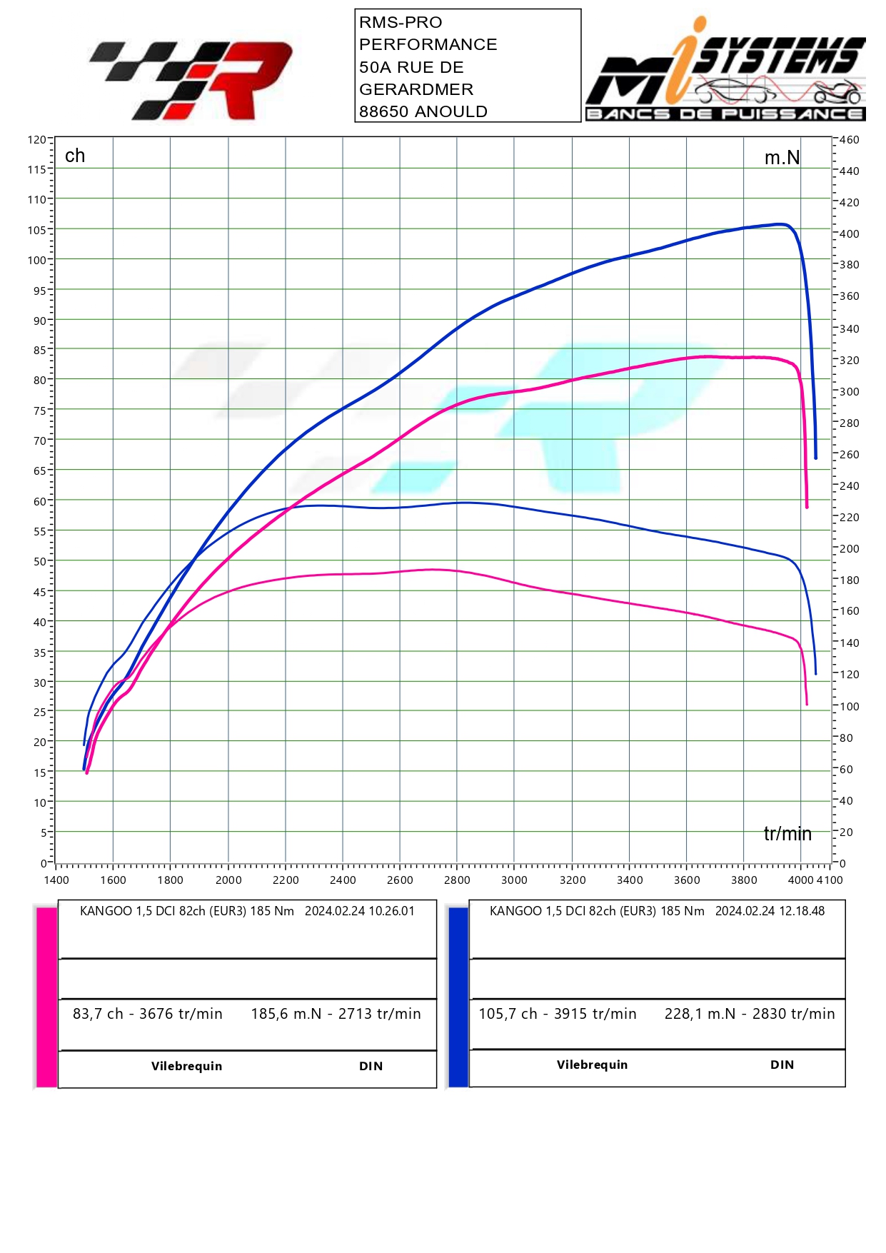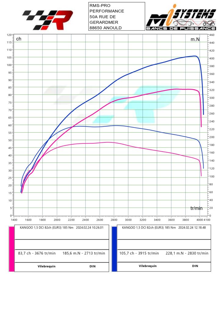 Voici les résultats obtenus après reprogrammation du calculateur moteur. Nous veillons à ne pas dépasser les tolérances fixées par le constructeur, tant au niveau du moteur que de la boîte de vitesse.