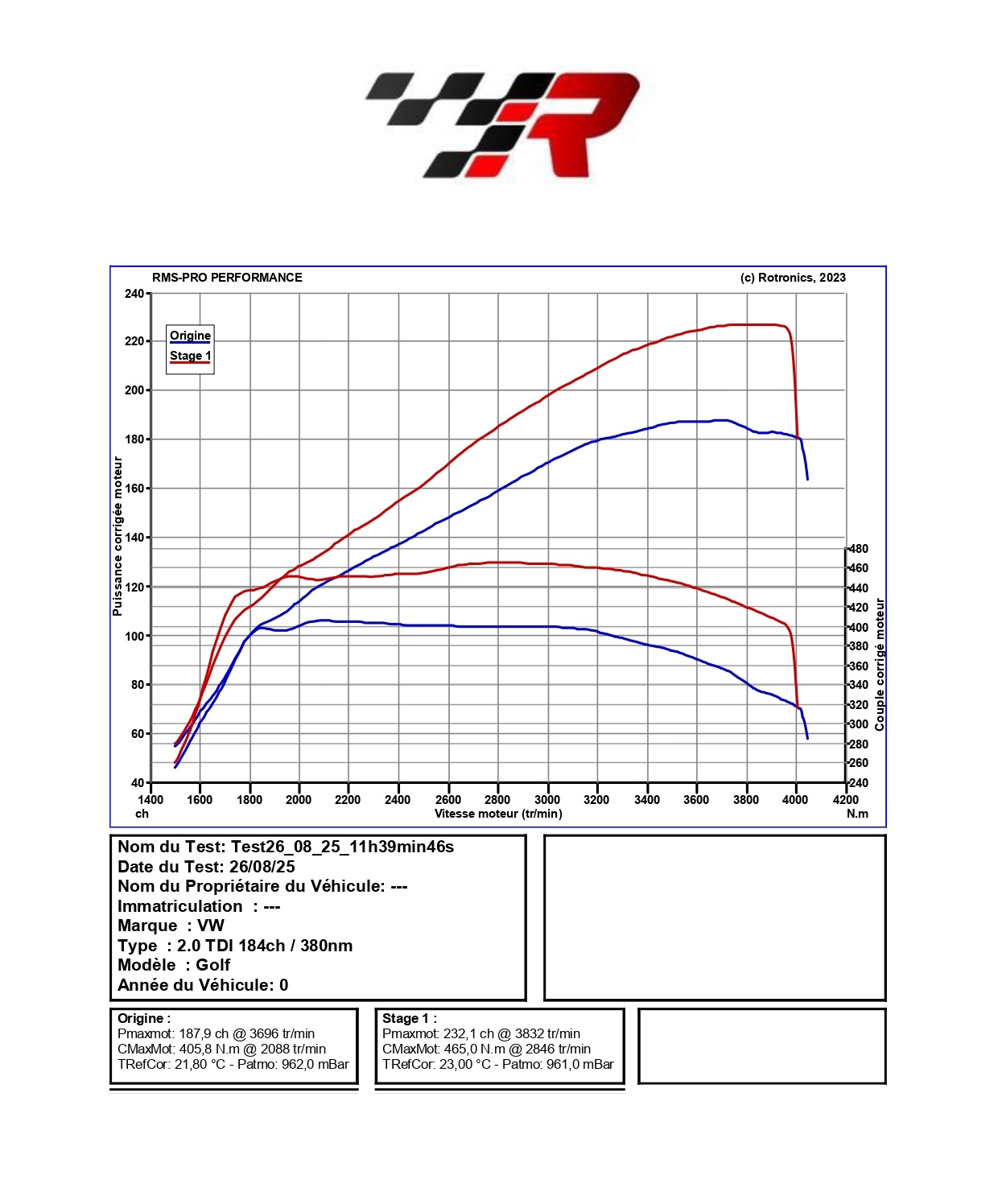 Voici les résultats obtenus après reprogrammation du calculateur moteur. Nous veillons à ne pas dépasser les tolérances fixées par le constructeur, tant au niveau du moteur que de la boîte de vitesse.